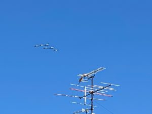 昨日は学校検診でしたが、空を見上げるとブルーインパルスが練習飛行中、一通りの演技を行う本格的なアクロバット飛行でした。