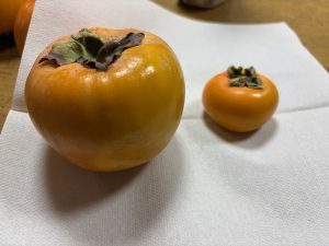 季節の果物、柿ですが、これは珍しい、全て食べることができる小粒の柿です。