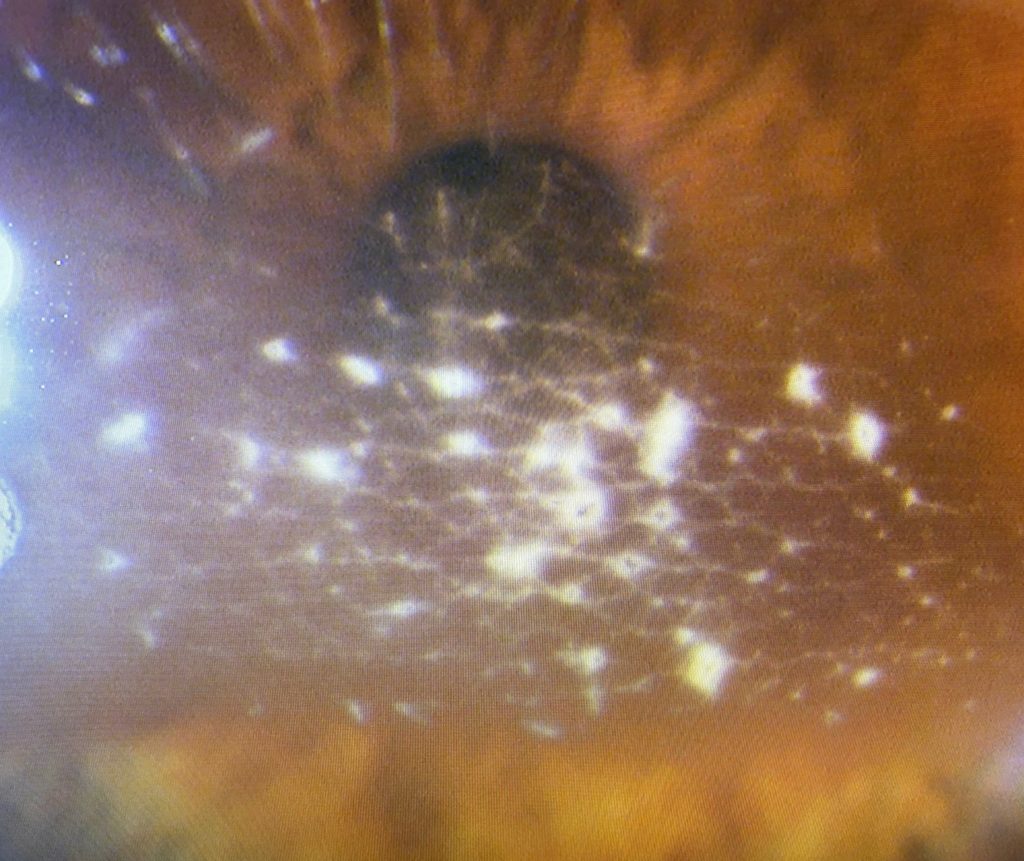 角膜変性症による混濁治療(エキシマレーザーによる) 更新日:2025年12月02日 お知らせ 後でこの記事を読むなら、はてなブックマークが便利です。 角膜変性症に伴う角膜混濁、比較的多くの方が実はいらっしゃるのですが、治療するために必要なエキシマレーザーは大掛かりな装置であるが故に、治療できる場所は限られ、岐阜県でも当院のみとなります。 本日、治療を受けられた方の治療前。 混濁が邪魔をしてかなり見えづらい状態です。 治療直後、大部分の混濁は除去できました。 すぐに明るくなったと言っていただけました。 角膜変性症による混濁治療は保険適応となります。 休診日以外は毎日、対応しております。 ツイート おすすめ関連記事 内覧会のお知らせ(4月3日、日曜日) 開院しました(4月5日) 8月16日(水)からは通常通り、診療を行っております。 外来終了