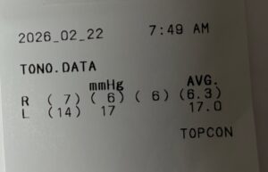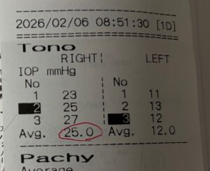 点眼薬だけでなく、内服薬も併用して手術前は25mmHgで中心視野がわずかに残るのみですが、全身状態から内服薬の使用は限界に。